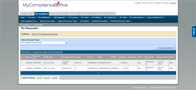 Viewing Pre-Clearance Requests