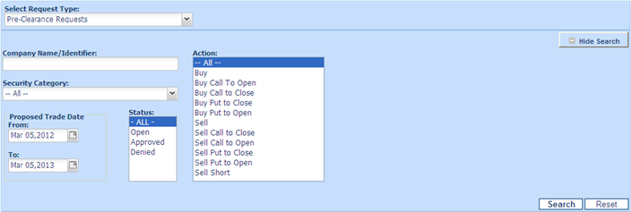 • Request By-The user in your firm requesting/has submitted the Pre-Clearance Request